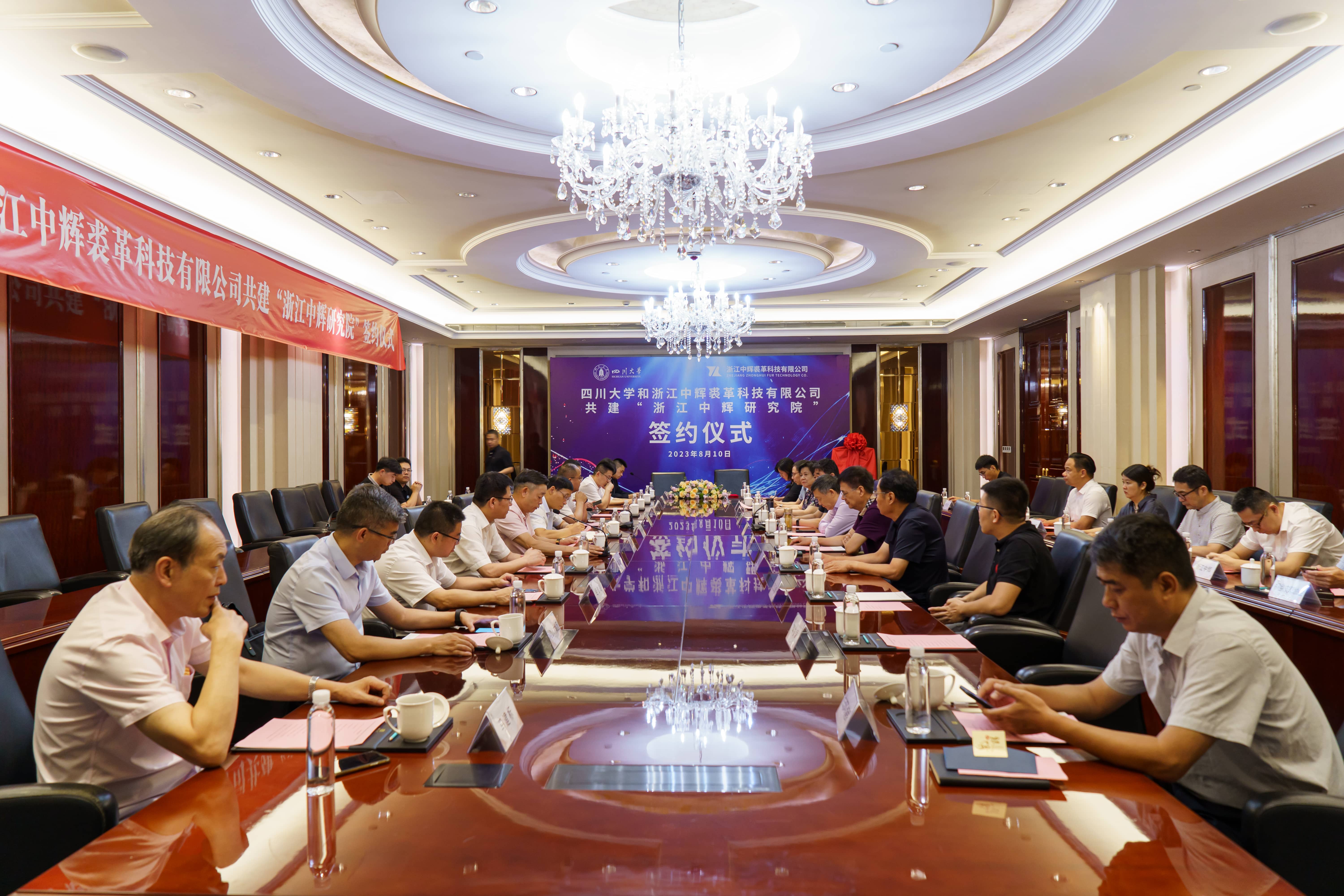 为深化产学研合作,搭建好校企合作桥梁,促进企业与高校的沟通和交流,解决企业在生产过程中遇到的实际问题,促进企业快速健康发展。2023年8月10日上午,四川大学与浙江午夜黄色网站裘革科技有限公司共建“浙江午夜黄色网站研究院”签约仪式于桐乡振石大酒店隆重举行。